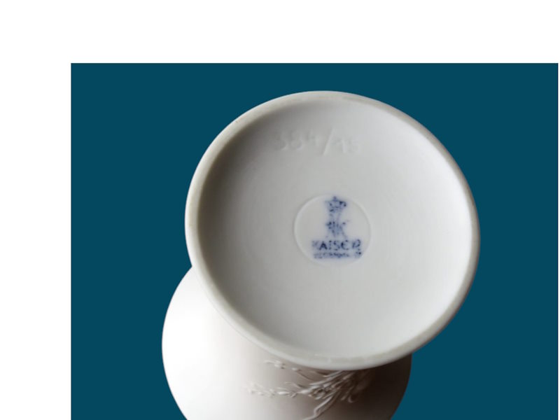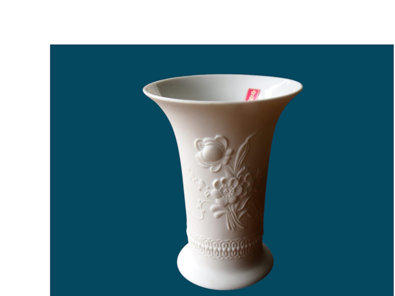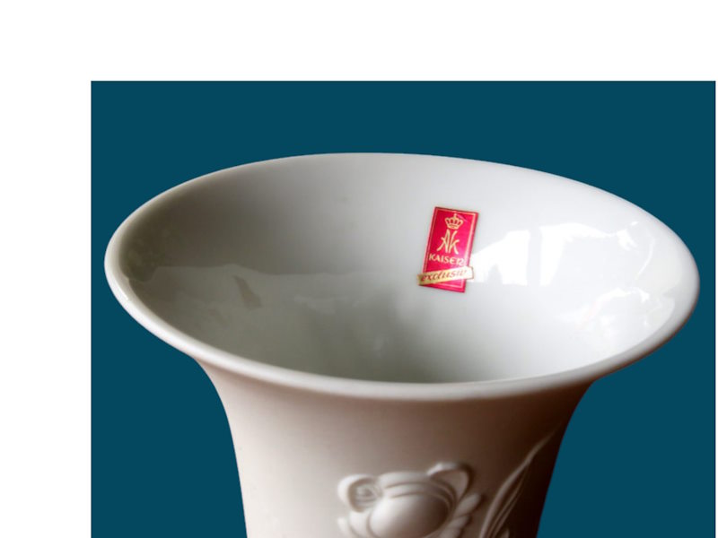 Белоснежная изящная белая фарфоровая ваза от немецкого производителя фарфора Kaiser. Бисквитный фарфор, объемный стилизованный рисунок, классическая форма.