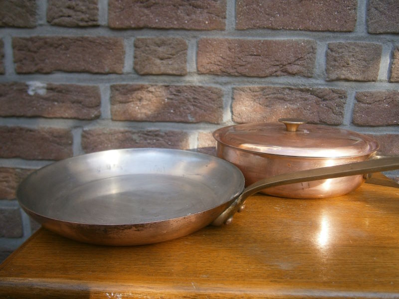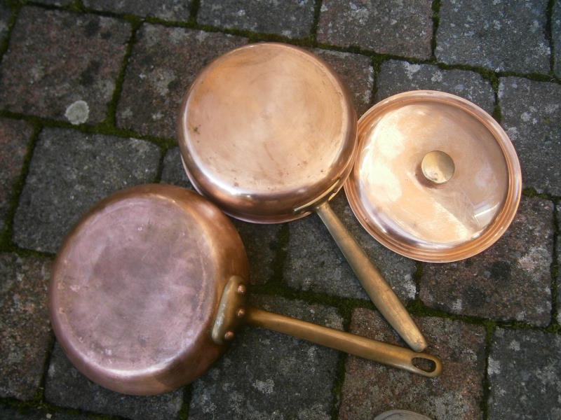 Европейская медная посуда - медные сковородки, внутри лужение, ручки латунные.