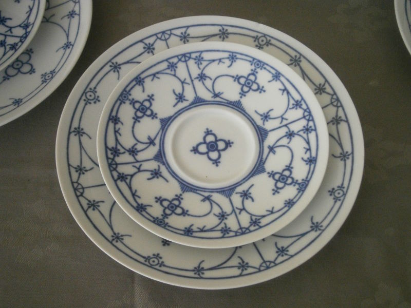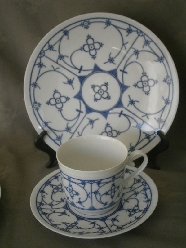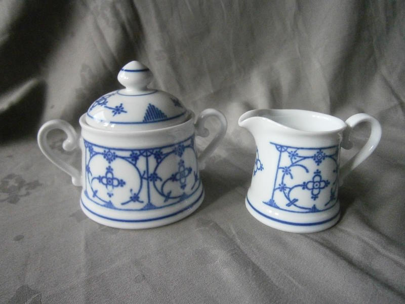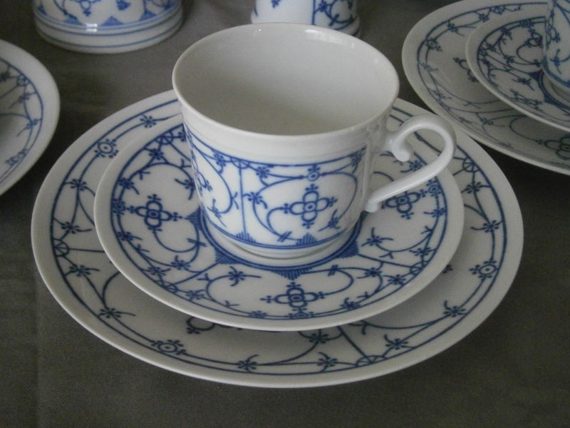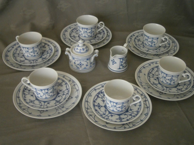 Чайно кофейный немецкий сервиз - знаменитый дизайн Indisch Blau Индиш блау. Этот дизайн возник очень давно и родом из Азии, откуда он через Голландию распространился по всей сереверной Европе, и много немецких фирм использовали его в своих изделиях.