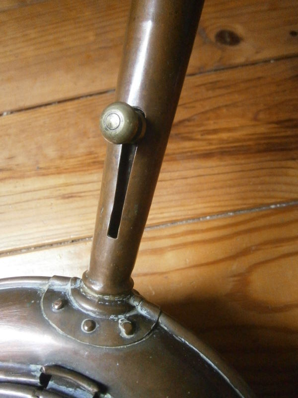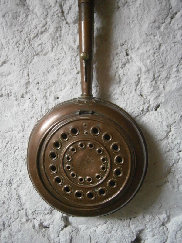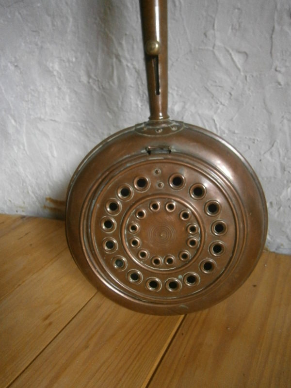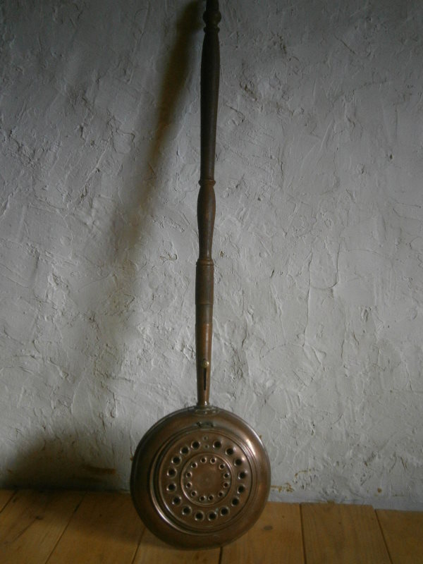 Но такую медную грелку можно и до сих пор встретить в провинции во Франции не только как предмет декора. Эта грелка редкая, у нее есть еще простенький механизм для открывания крышки.