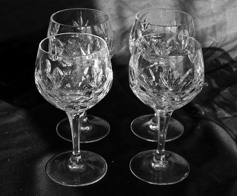 Бокалы на четыре персоны для белого и красного вина. Традиционно бокалы для белого вина несколько крупнее и с более открытой чашей.
